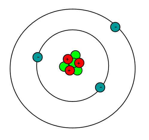 Každá látka je složena z nepatrných hmotných částic - atomů. Jak se nazývá prvek, jehož atom je na obrázku?