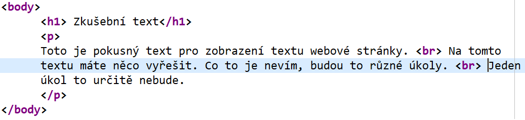 Značkaznamená vynucený přechod na nový řádek. Nevytvoří se přitom žádný nový odstavec.