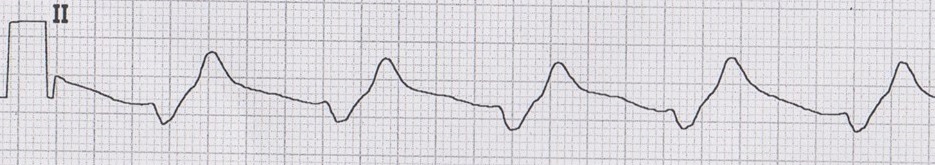 Resuscituješ. Při kontrole rytmu vidíš tento obraz. Jedná se nejspíš o: