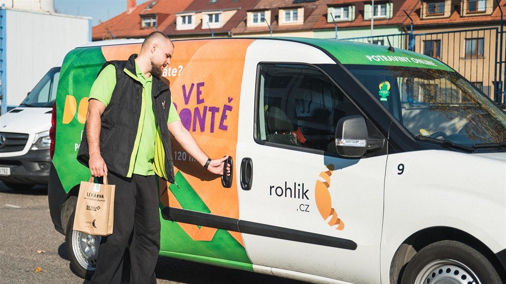 Which Czech city does the Rohlik.cz courier NOT deliver to? Drag the man to the correct answer!