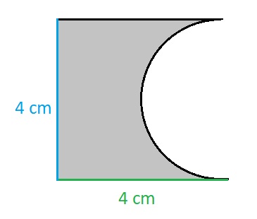Vypočítáme obsah čtverce a obsah půlkruhu. Poté od obsahu čtverce odečteme obsah půlkruhu a dostaneme obsah celého obrazce.