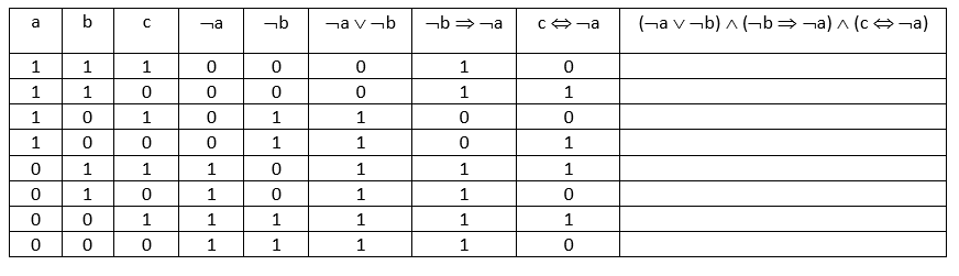Teď už se to jen všechno nacpe do tabulky a hurá na určování pravdivostních hodnot!