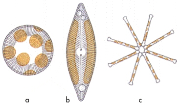 Rozsivky jsou hnědé řasy s dvojitou křemičitou schránkou.Chaluhy jsou hnědé řasy nacházející se převážně v mořské vodě. Díky jejich schopnosti fotosyntetizování jsou schopny vyprodukovat obrovské množství biomasy.
