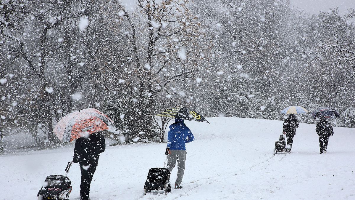 It (snowed/was snowing) when we (left/were leaving) home.